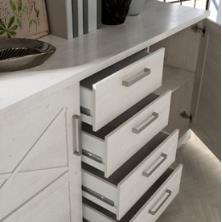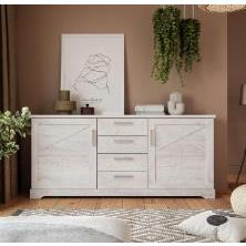 Aparador de dos puertas y cuatro cajones. Disponible en color blanco pino.