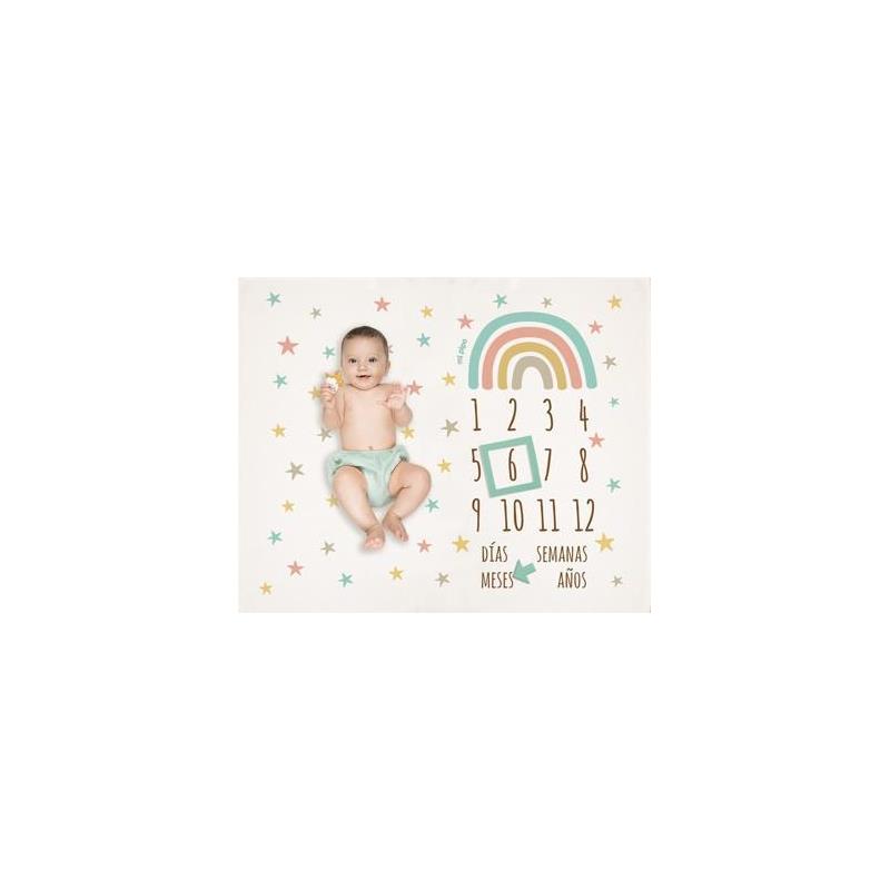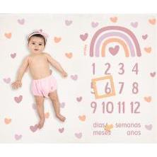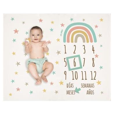 Modelos: Manta Cumplemes Arcoíris Soft/ Manta Cumplemes Globo/ Manta cumplemes Banderín/ Manta Cumplemes Arcoíris Blush.