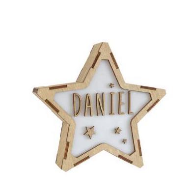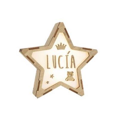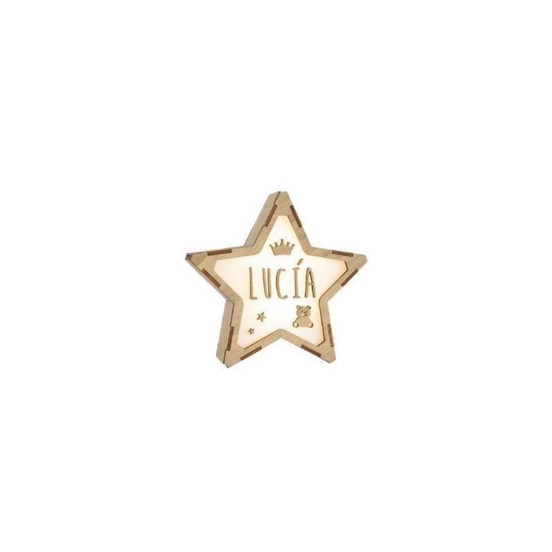 Lámpara en forma de estrella, realizada a mano, en madera de bosque sostenible.