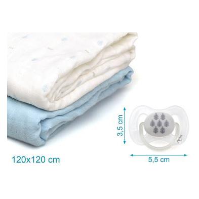 C/V. SET 2 MUSELINAS Y CHUPETES +0 AZUL