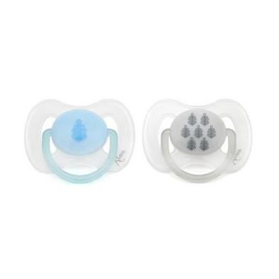 Nuestros chupetes para bebé vienen en packs de 2 unidades con distintos diseños, escudos y anillas de cantos redondeados y suaves, perforaciones estratégicas que reducen la irritación de la piel del bebé y tetinas de silicona suaves y flexibles. Su forma ortodóntica inspirada en el pezón materno minimiza la presión sobre el paladar, mandíbula y dientes. La mayor ventaja de las tetinas 100% silicona es que no absorbe olores ni sabores y mantiene su forma.