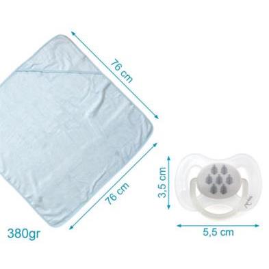 El set de toalla, chupetes y accesorios para chupete reúne todo lo que suele necesitar un bebé en su día a día, de una forma práctica y muy cómoda para las familias. Es un conjunto pensado para acompañar desde los primeros días, con materiales suaves, seguros y fáciles de usar.