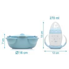 Incluye una taza de aprendizaje, perfecta para empezar a beber de forma independiente gracias a su tetina suave y su diseño que evita derrames. También incorpora un cuenco térmico con tres compartimentos, que mantiene la comida caliente durante más tiempo y se fija bien a la mesa gracias a su ventosa, evitando vuelcos y facilitando esos primeros intentos de comer solos. Para completar el conjunto, la caja plegable ofrece un espacio práctico para guardar utensilios, snacks u otros accesorios, manteniéndolo todo organizado tanto en casa como en las salidas.