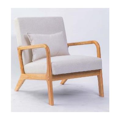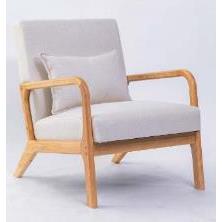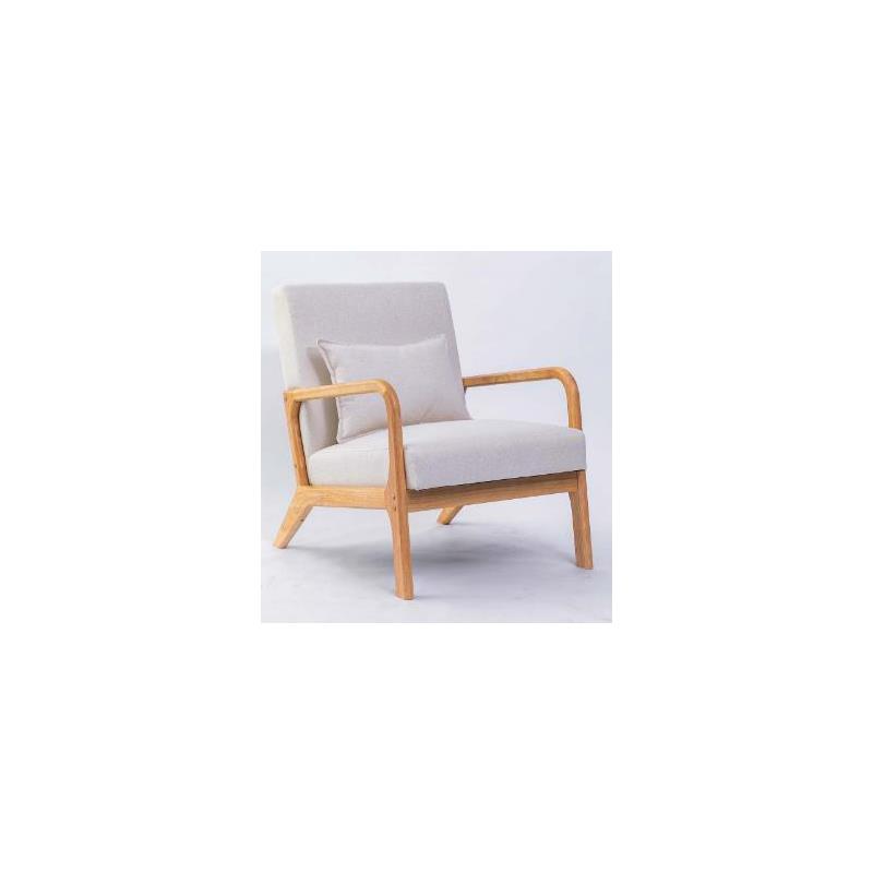 Butaca con asiento acolchado en color beig con patas de madera.