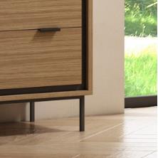 Los tiradores y patas en color negro introducen un contraste sutil y actual que realza el diseño del mueble, aportando ligereza visual y un carácter más moderno. Las patas elevadas, además de estilizar la pieza, facilitan la limpieza diaria.