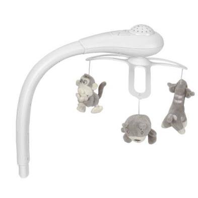 El set incluye un móvil electrónico con diferentes funciones:- tres juguetes colgantes extraíbles que giran.- proyector de luz nocturna con tres modos de iluminación.- dos modos de vibración.- Alimentación: 2 x AAA (no incluidas).