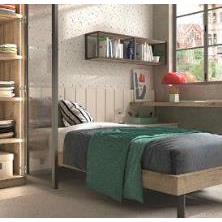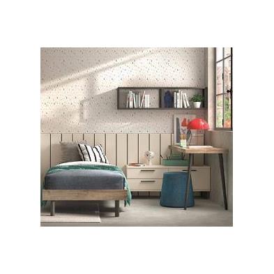 Este fantástico conjunto, compuesto por una cama individual con cabecero-respaldo, zona de estudio y estante de pared, te permitirá crear un espacio único y personal en tu habitación.