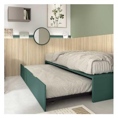 La cama nido juvenil ALBA 61 está diseñada para sacar el máximo partido al espacio en dormitorios juveniles, aportando una solución cómoda, versátil y visualmente equilibrada. El conjunto incorpora dos camas aptas para colchón de 90 x 190 cm, ideales tanto para el uso diario como para recibir visitas sin renunciar al confort.