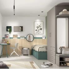 A nivel estético, la combinación del acabado alpino aporta frescura y personalidad al dormitorio, creando un ambiente moderno y relajado. Es una propuesta especialmente adecuada para habitaciones juveniles actuales, espacios creativos o dormitorios que buscan un toque diferente sin perder neutralidad.