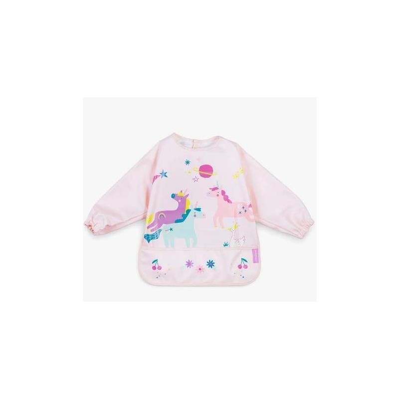 Los baberos de manga larga de Miniland son el aliado ideal para mantener a los más pequeños limpios y cómodos durante las comidas, actividades artísticas o juegos creativos. Diseñados para ofrecer máxima protección y practicidad, están fabricados en material PU, que es impermeable, ligero y resistente, perfecto para resistir el uso diario de los niños más activos.El diseño incluye goma elástica en los puños, que evita que los líquidos o restos de comida entren en contacto con las mangas, y un cierre de presión con dos botones en el cuello, ajustable para mayor comodidad según la talla del peque. Además, cuentan con un amplio bolsillo recoge migas que ayuda a mantener las superficies limpias y atrapar cualquier derrame.Un detalle práctico es la etiqueta personalizable, que permite escribir el nombre del niño o niña, ideal para evitar confusiones en la guardería o en casa. Estos baberos son aptos para lavadora (máx. 30º), lo que facilita su limpieza y los hace perfectos para el día a día.Disponibles en diseños alegres y coloridos, como unicornios, dinosaurios y animales de la jungla, no solo protegen, sino que también encantan a los peques con su estilo divertido.Un accesorio imprescindible para las familias que buscan funcionalidad, resistencia y un toque de alegría en las rutinas de sus hijos.