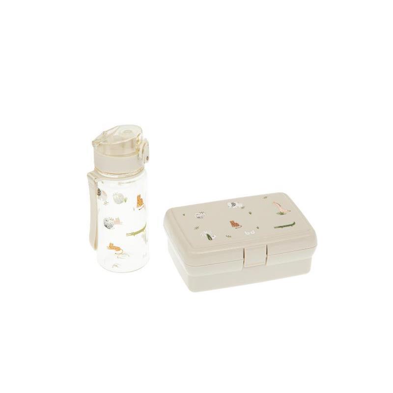 La botella Tritán, con capacidad de 350ml, es ideal para mantener hidratado al bebé, ofreciendo un diseño ergonómico que facilita el agarre con facilidad. La caja de almuerzo, con dimensiones prácticas y tamaño compacto, permite transportar snacks y comidas adaptadas a las necesidades infantiles, brindando una solución completa y cómoda para padres y bebés.
