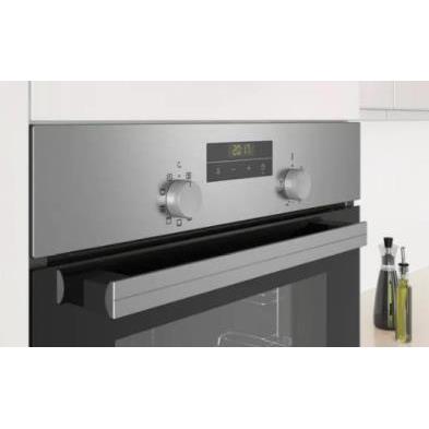 Display: Display LED en color ámbar con mandos.Nº de modos de calentamiento 7.Método de cocción:Aire caliente suave, Aire caliente, Hornear, Horno de leña, Solera, Turbo grill, Grill variable total.Rango de temperatura: 50-275 °C.Tecnología de vapor: N/A.Sistema de limpieza: Hidrolítico.Sistema para colocar las bandejas: N/A.Apertura de la puerta: Puerta abatible.Volumen útil (de cavidad) NUEVO (2010/30/CE): 66 l.Clase de eficiencia energética (2010/30/EC): A.