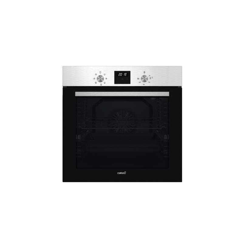 PRÁCTICO: El horno Multifunción Digital de Cata dispone de 7 funciones y un diseño elegante que encaja en cualquier cocina. Tiene eficiencia energética de clase A que lo hace de bajo consumo para cuidar del medio ambiente.POLIVALENTE: Su volumen interior de 80 litros para tener el espacio suficiente y hacer pizzas, bizcochos o cualquier otro tipo de plato. El horno dispone de 7 funciones destacando: grill total, resistencia solera, resistencia superior, cocción tradicional y precalentamiento rápido 150ºC en 4 minutos.REGULABLE HASTA 240º C: Además, el horno de Cata cuenta con Programador de Cocción Mecánico con paro automático.CALIDAD: El horno de Cata dispone de una puerta panorámica full glass de fácil limpieza con cristal desmontable y una puerta fría de 2 cristales con ventilación tangencial.FÁCIL DE LIMPIAR: Limpiarlo es muy sencillo, gracias al sistema de limpieza Aquasmart y su cristal desmontable para ayudar a mantener el horno limpio de forma cómoda y rápida.