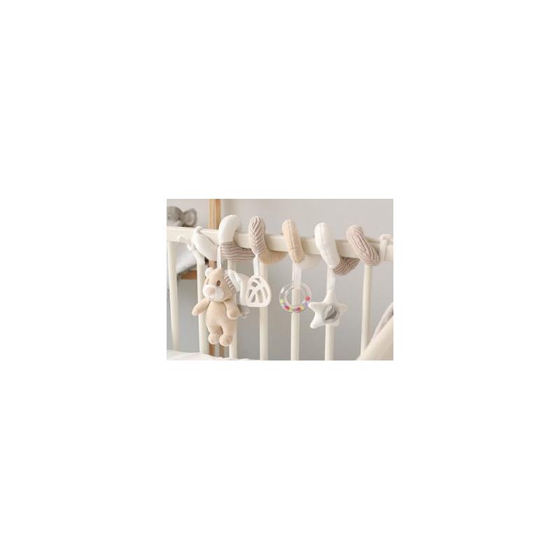 Con nuestro osito de peluche con forma de espiral, tu peque se sentirá acompañado desde la cuna y entretenido en la silleta, ya que es ideal para ponerlo en la barra delantera, y que el bebé juegue con él durante su paseo diario. También se puede colocar en la baranda de la cuna o utilizarlo como un peluche más de su colección. Un peluche del que no querrá separarse cuando salga de paseo o se vaya a dormir.