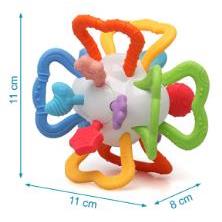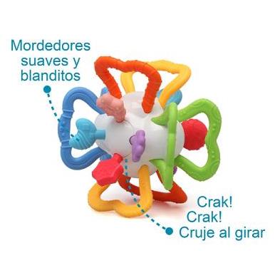 Fabricado con ABS y TPE, materiales seguros y duraderos, su diseño entrelazado es fácil de agarrar, mejorando la motricidad fina. Es el compañero perfecto para la dentición y el desarrollo sensorial de tu bebé, práctico y divertido.
