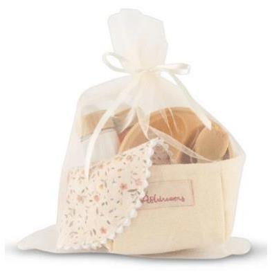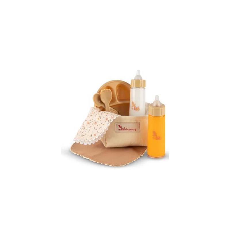 Con este encantador set de comida para muñecos, los pequeños podrán disfrutar de juegos más realistas y divertidos. Diseñado para muñecos de 36 a 46 cm, incluye un plato, cubiertos, dos baberos con diferentes estampados y dos biberones mágicos: uno con zumo y otro con leche. Todo se guarda en una cestita de tela y, para un toque aún más especial, se presenta en una bolsa de tul, ideal también para regalar.Especificaciones técnicas:Producto: Set de comida para muñecos.Contenido: Plato, cubiertos, 2 baberos con distintos estampados, 2 biberones mágicos (zumo y leche), cestita de tela.Tamaño compatible: Muñecos de 36 a 46 cm.Edad recomendada + 36 meses.