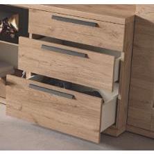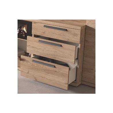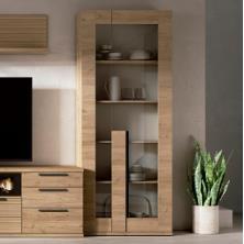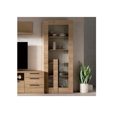La composición de salón DAVOL 308 se convierte en el auténtico punto focal del espacio, combinando diseño actual, funcionalidad y una atmósfera acogedora que invita a disfrutar del hogar. Su cuidada mezcla de acabados en color nature y detalle rayado aporta profundidad visual y un carácter muy decorativo, ideal para salones contemporáneos con un toque cálido y natural.