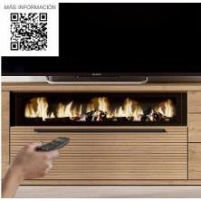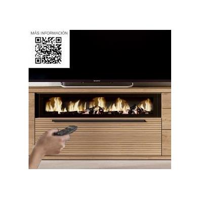 El conjunto está formado por un mueble de televisión de gran capacidad, una vitrina vertical con puertas acristaladas y un estante superior, creando una composición equilibrada que integra almacenaje cerrado, espacios de exposición y una estética muy limpia. El detalle protagonista es su chimenea decorativa integrada, que aporta calidez visual sin necesidad de obra, con mando a distancia y diferentes intensidades de llama, permitiendo crear ambientes acogedores en cualquier momento del día.