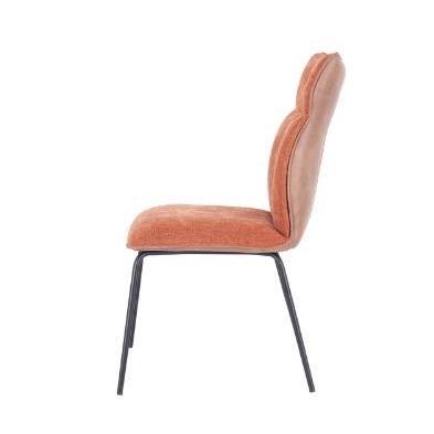 La combinación de tapicería en tela y símil napa, más patas metálicas en color negro, crea un contraste único, añadiendo personalidad a tu comedor.