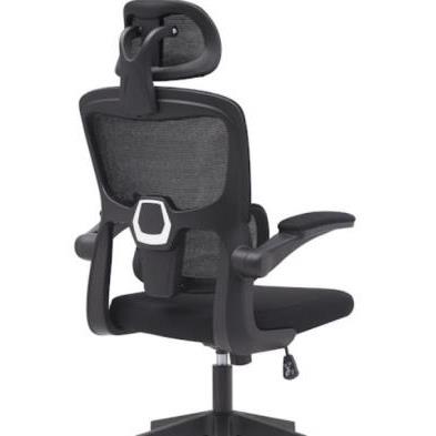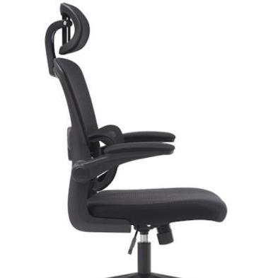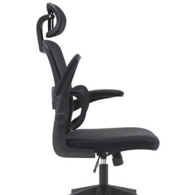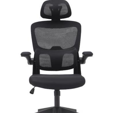 Silla de oficina con respaldo ergonómico y reposacabezas regulable, con estructura de polipropileno y tapizado en tejido 3D.
